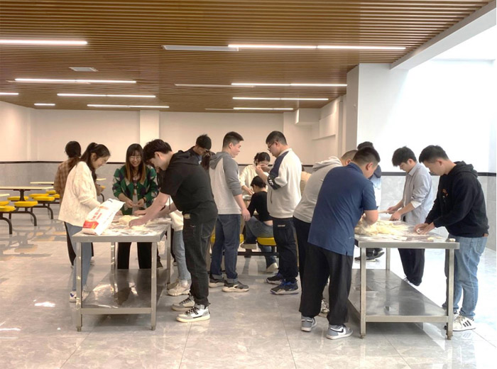 活動(dòng)現(xiàn)場(chǎng)其樂(lè)融融,有的和面搟皮,有的洗菜剁餡,還有的忙著包餃子。經(jīng)過(guò)一上午的努力,一碟碟熱氣騰騰的餃子端上了食堂餐桌,給周末在公司加班的同事們添菜送溫暖。此次活動(dòng)以包餃子為載體,拉近了團(tuán)員之間的距離,充分發(fā)揚(yáng)了雷鋒精神和“奉獻(xiàn)、友愛(ài)、互助、進(jìn)步”的志愿精神,用實(shí)際行動(dòng)書(shū)寫(xiě)新時(shí)代雷鋒故事。